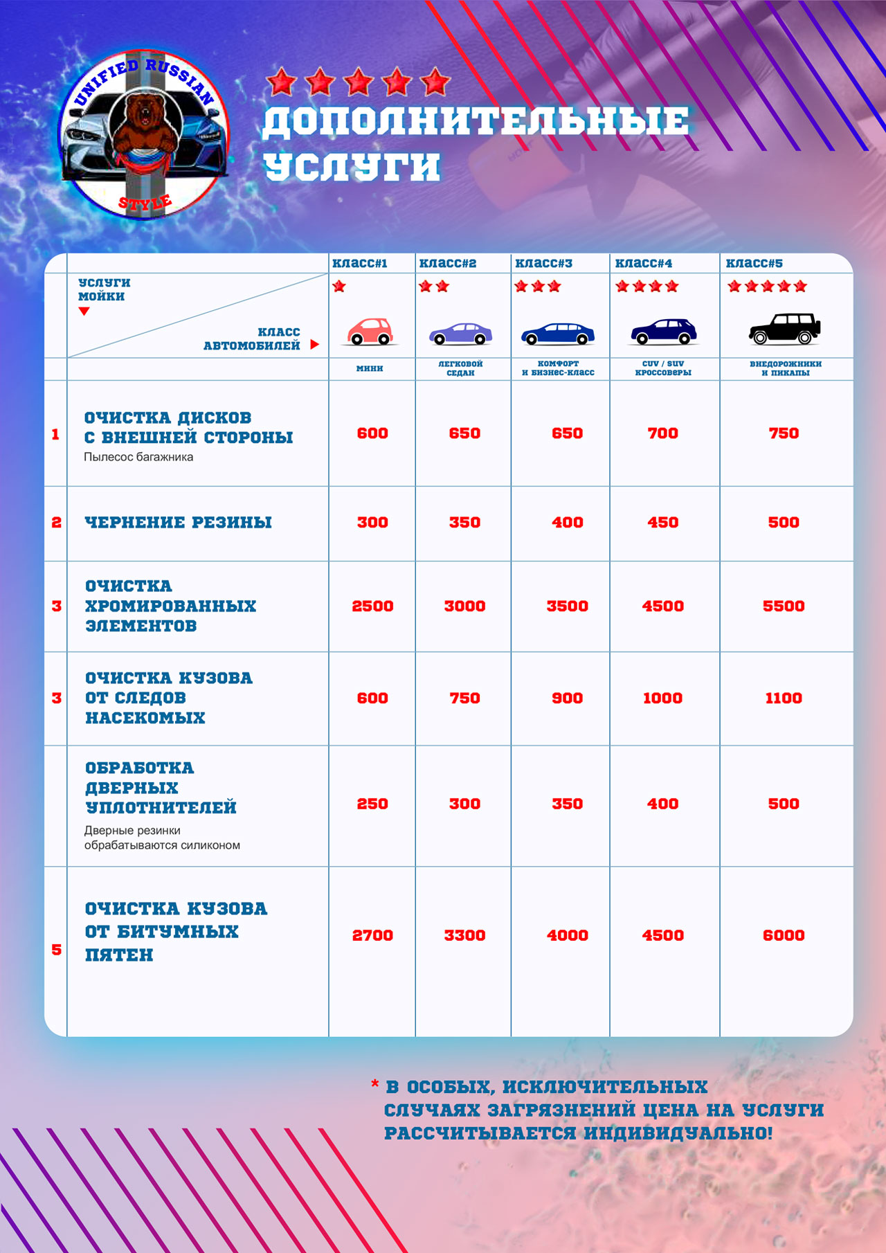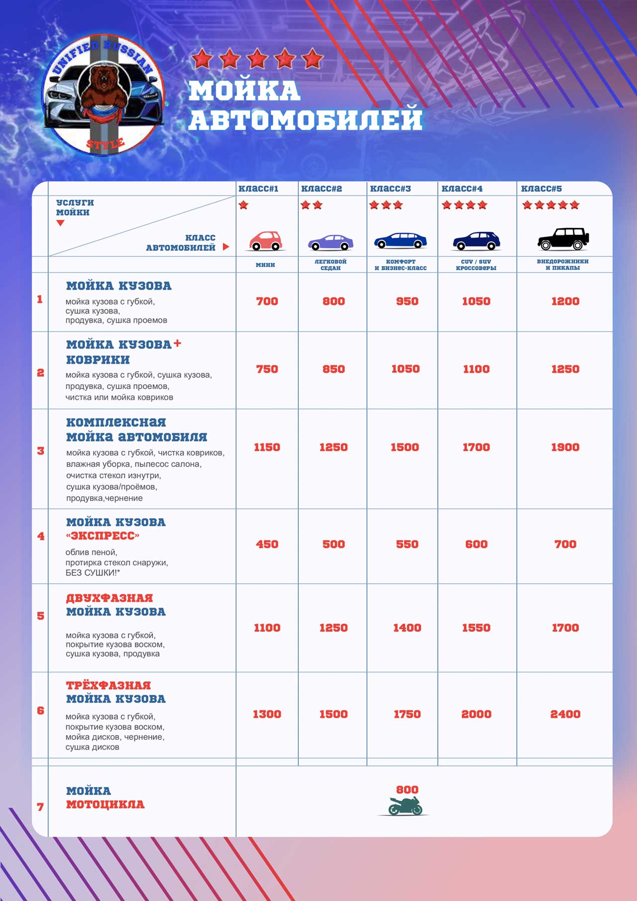 Стоимость услуг автомойки